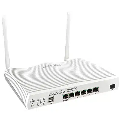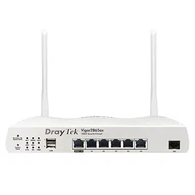 The Vigor 2865ax is a VDSL and Ethernet WAN router featuring VPN, advanced routing features, firewall, content filtering, bandwidth management and more. Connect the Vigor 2865ax to Superfast Fibre with its integrated VDSL modem. Alternatively, connect to VirginMedia Cable and Ultrafast FTTP with Ethernet WAN.